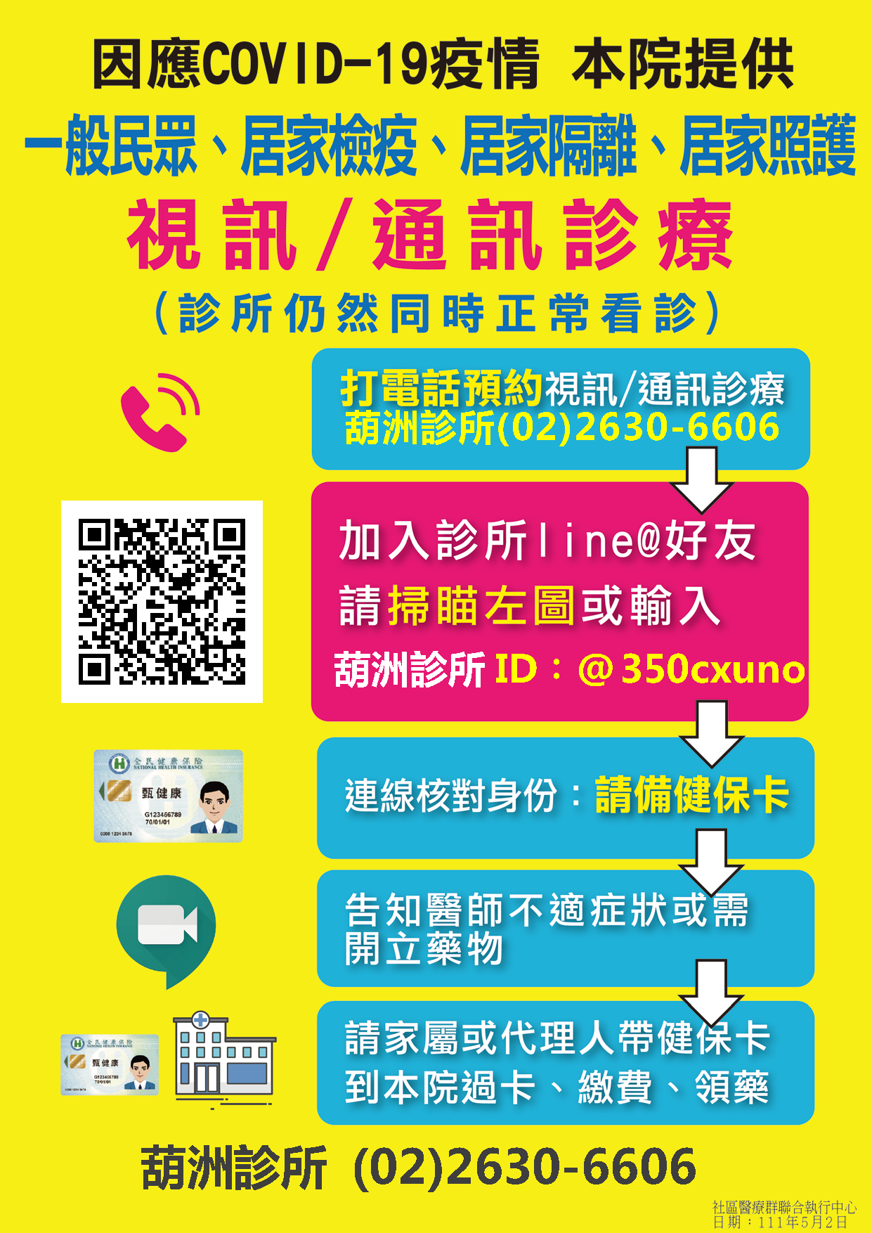 | 本院提供【視訊診療】服務,讓您不用出門也可看病喔
